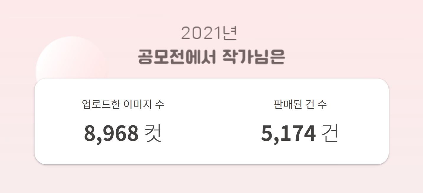 ▶2021년엔 오히려 공모전 판매량이 일반스톡판매량을 근소한 차이로 앞섰네요