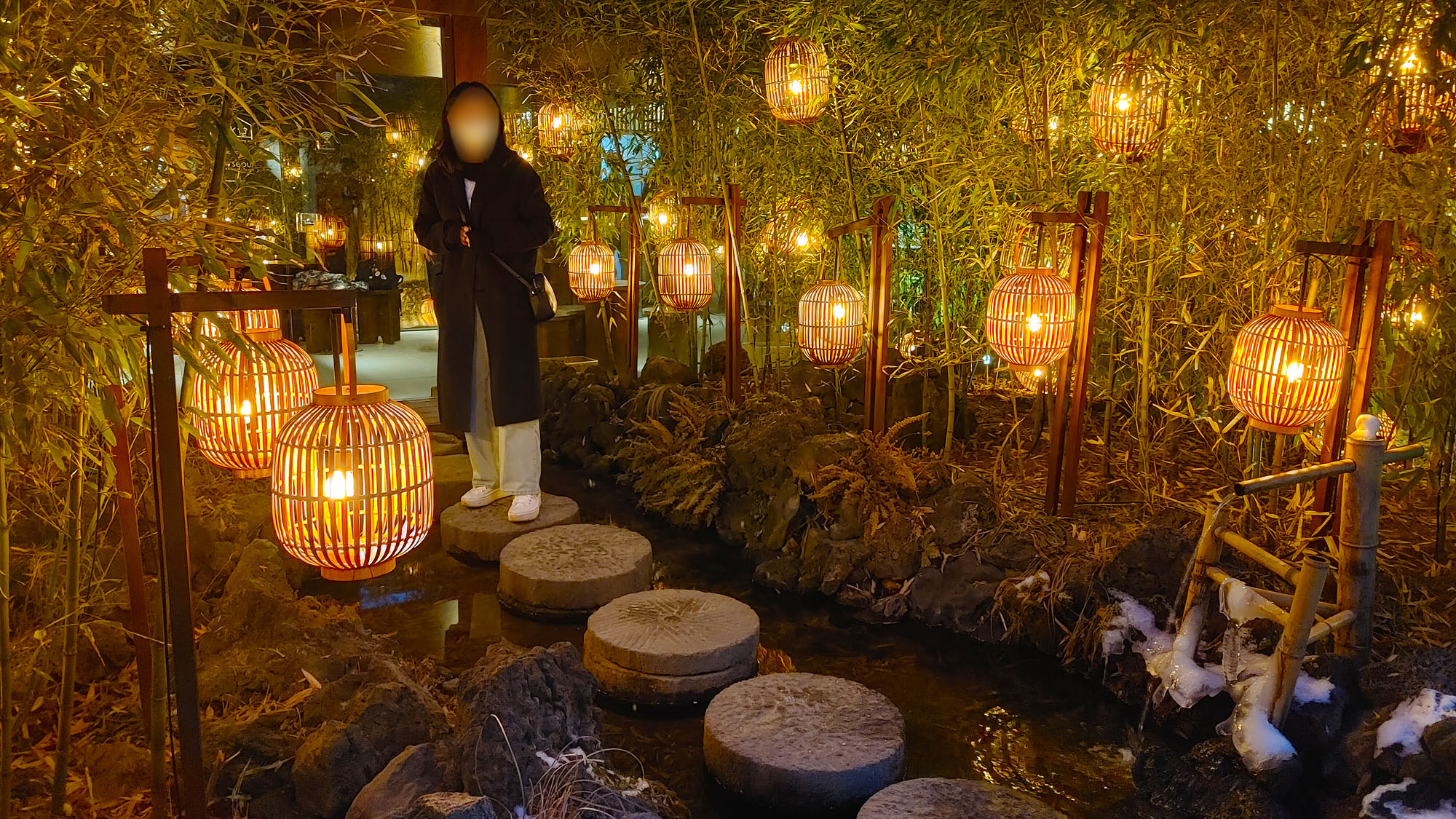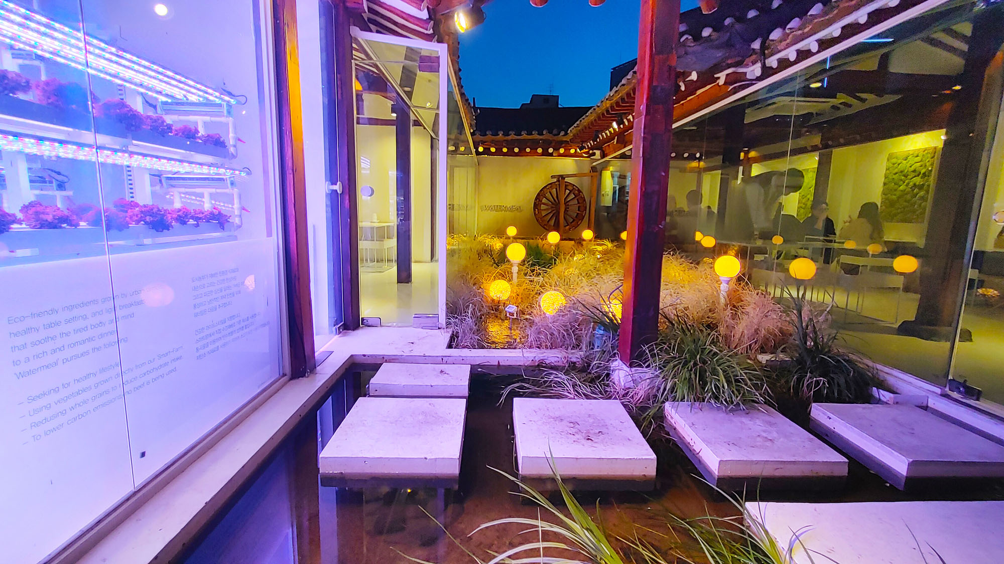 이곳은 1년 내내 늘 이렇게 붐빕니다. 일본풍의 조경과 톡특한 테이블이 이국적인곳