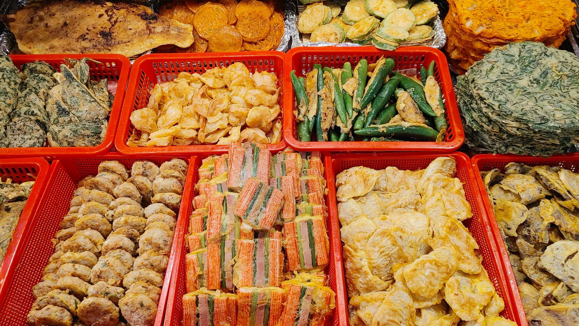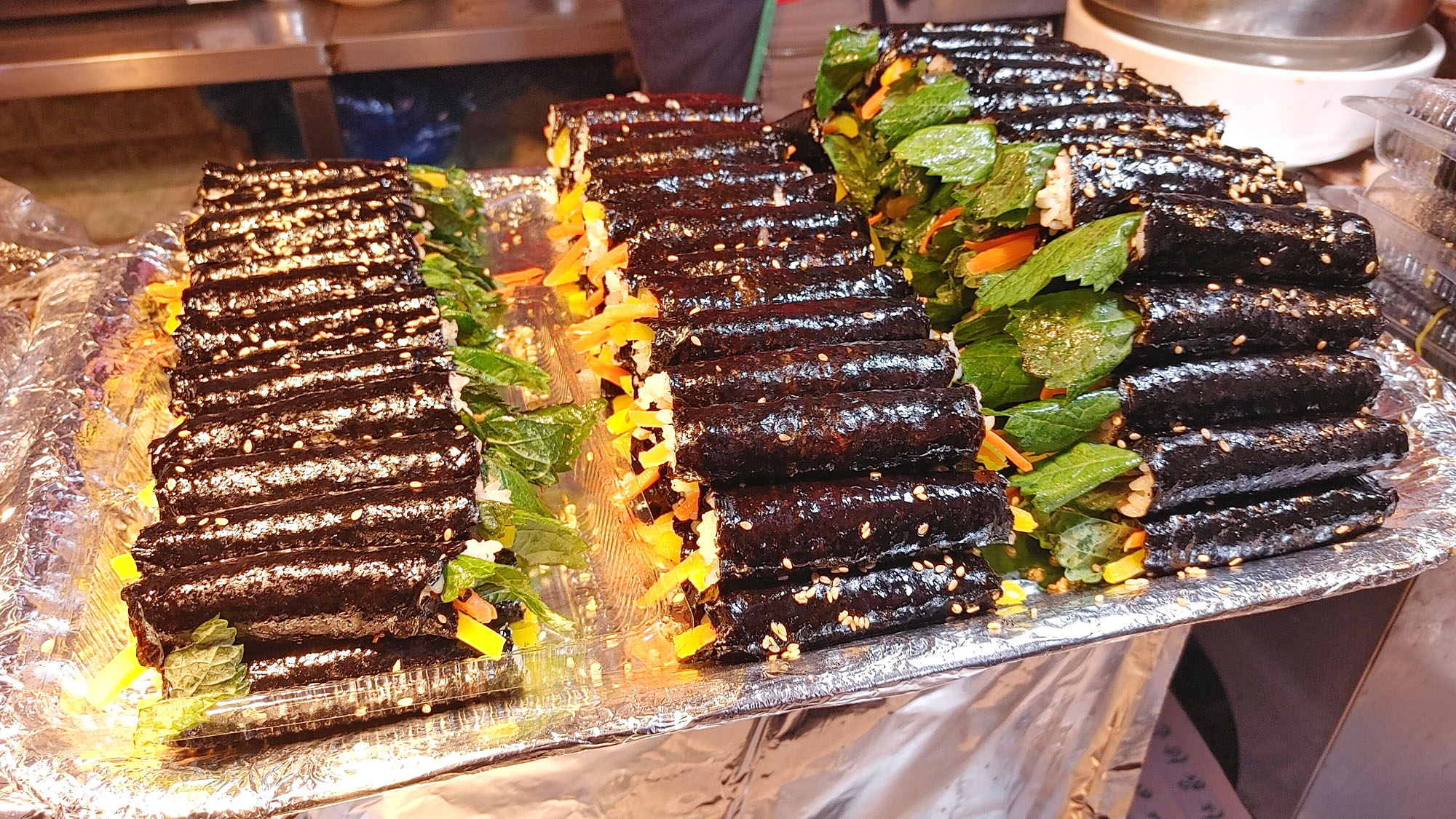 누드김밥과 최근에 엄청 뜬 붕어빵,찹쌀꽤비기,꿀호떡을 비롯하여 육회집,대구탕,한과,수제순대, 떡볶이 등