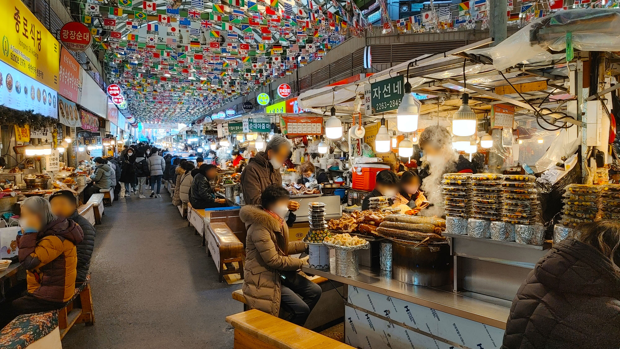 입구를 따라 사람들이 많은곳으로 들어가다보면 바로 광장시장의 핫플, 먹거리골목 입니다.