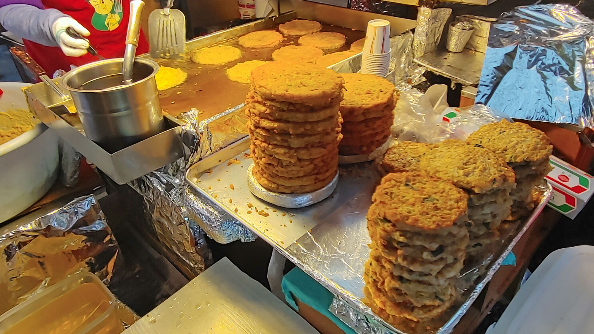 다 구워지는대로 이렇게 옆에 빈대떡탑을 쌓아둡니다.
