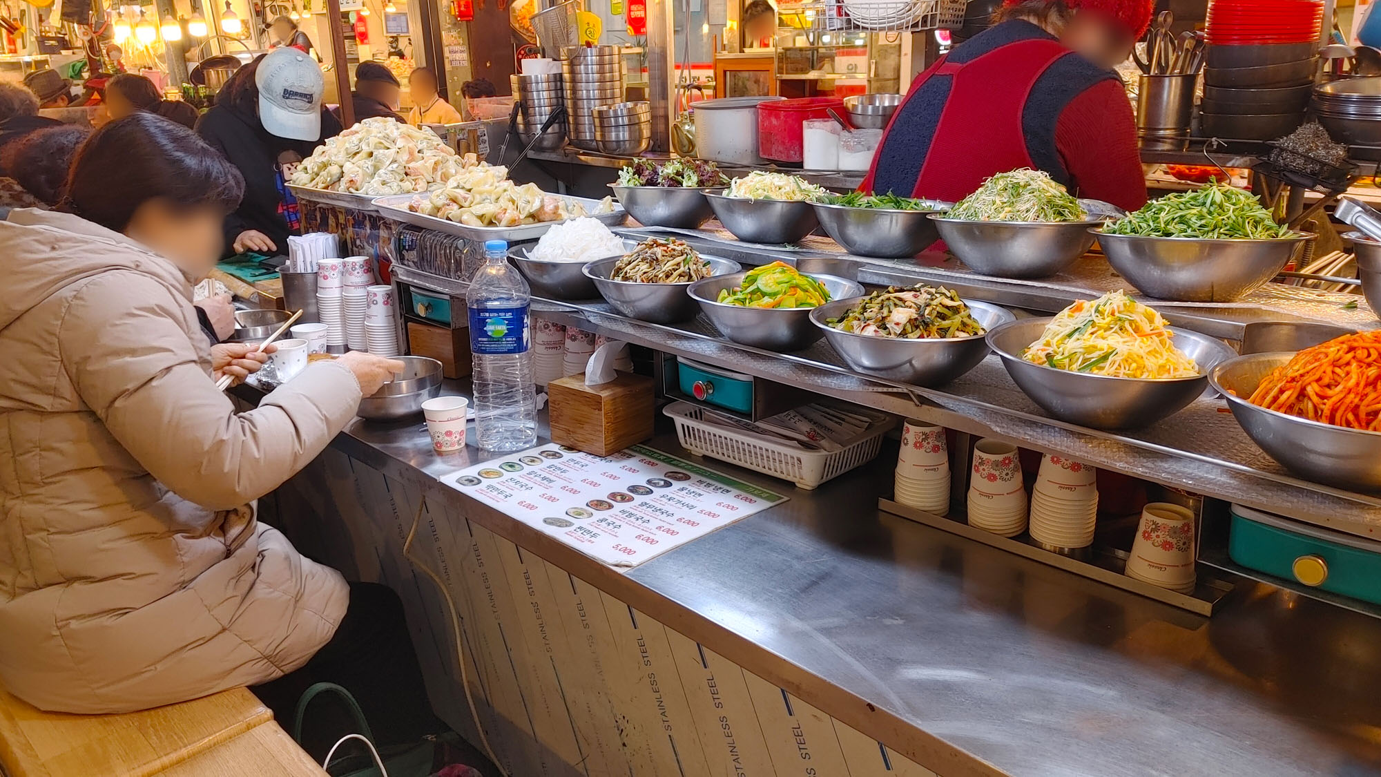 광장시장 한복판에 자리한 '먹거리골목' 엔 그 유명한 빈대떡,각종 주침개,야채비빔밥,마약김밥과