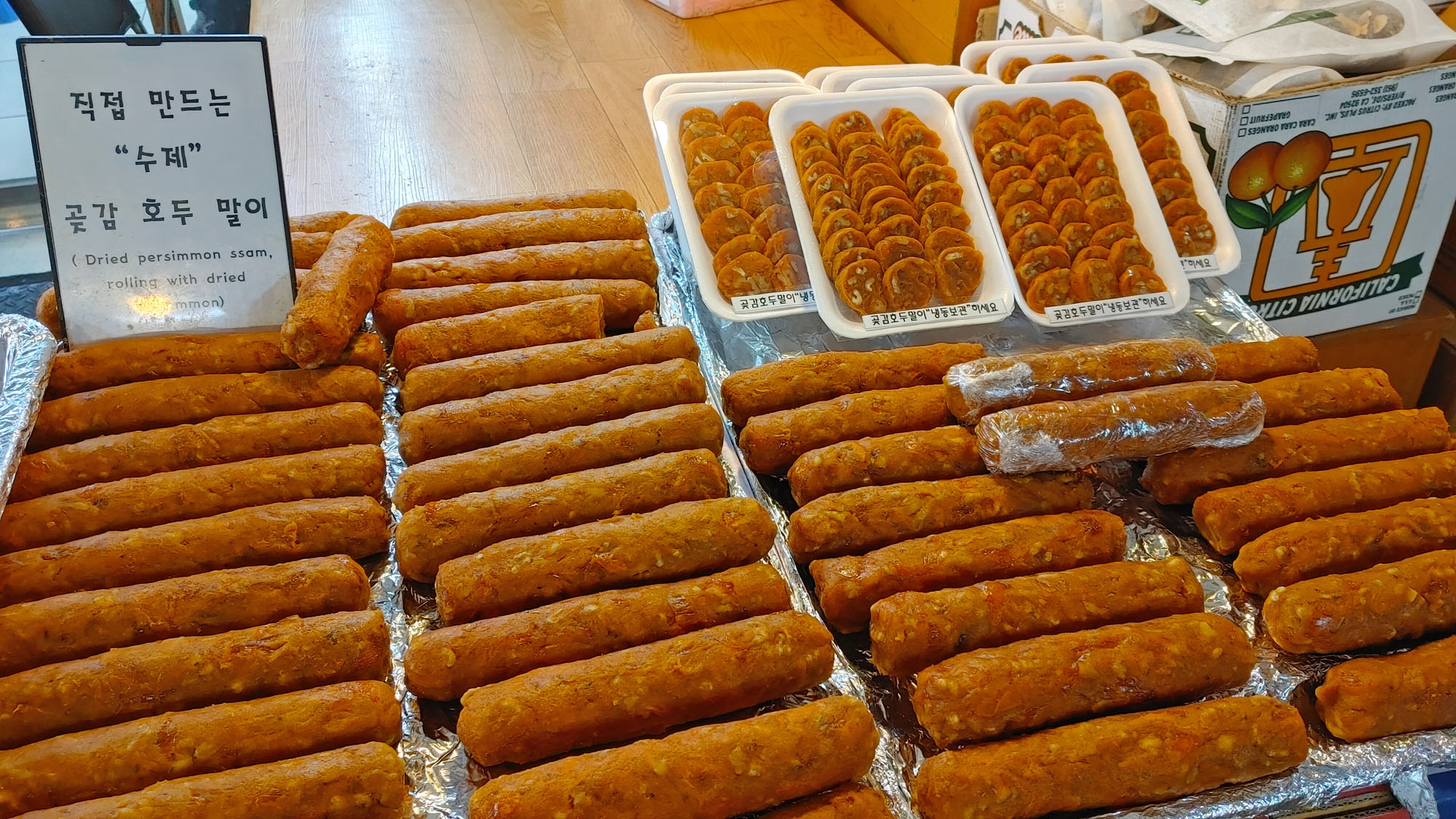 호두속을 넣고 곶감으로 둘둘말은 곶감호두말이 입니다.
