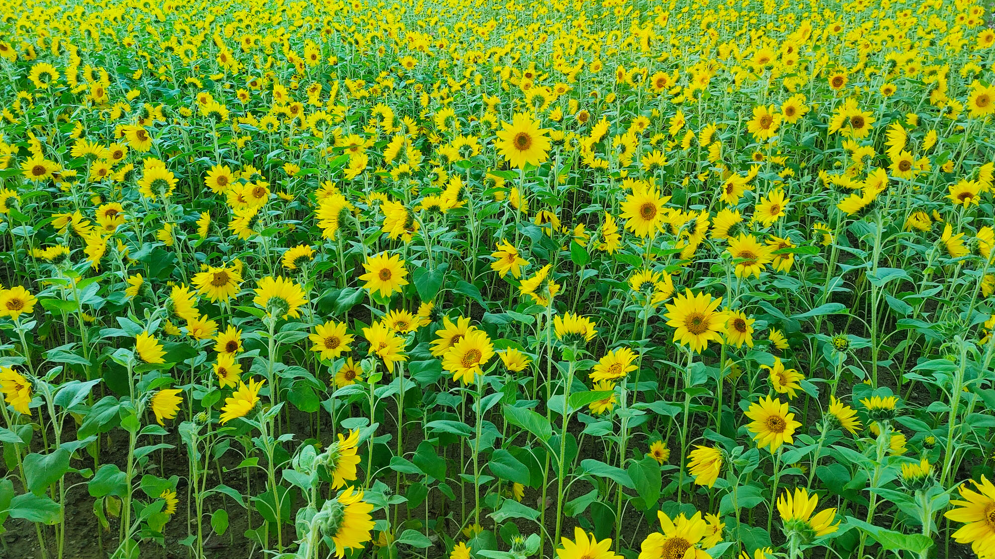 수만송이 키작은 해바라기꽃들에 숨이 막힐 지경입니다.